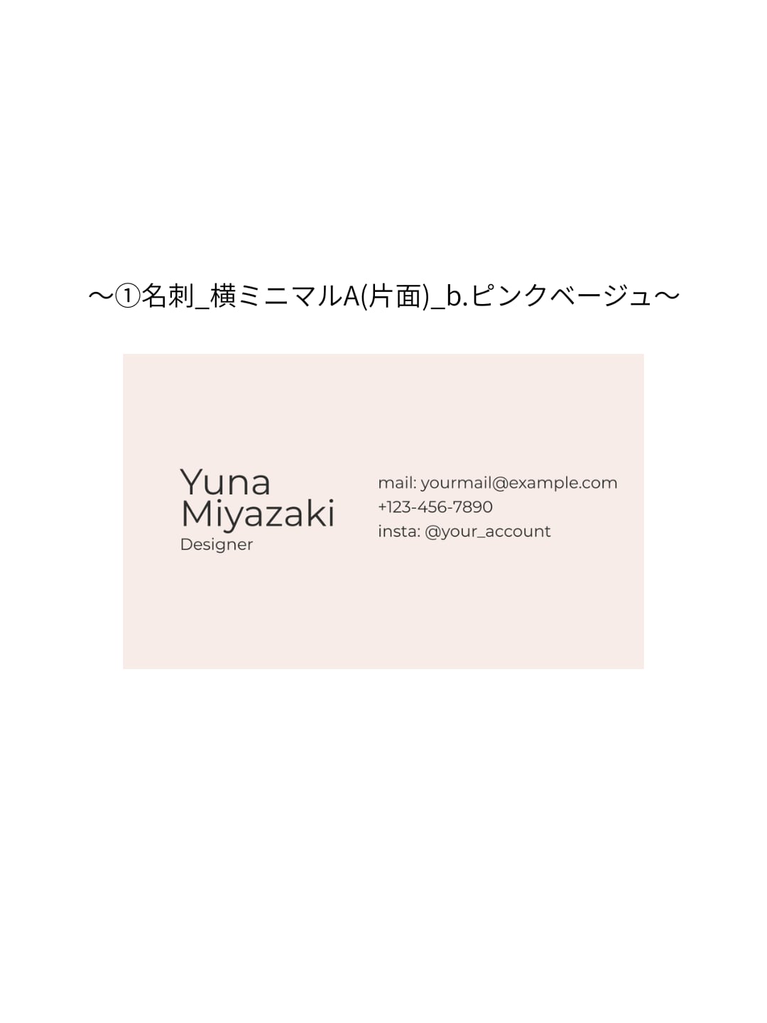 ①名刺テンプレート_横ミニマルA(片面)_b.ピンクベージュ|Canva無料で誰でも簡単に編集◎