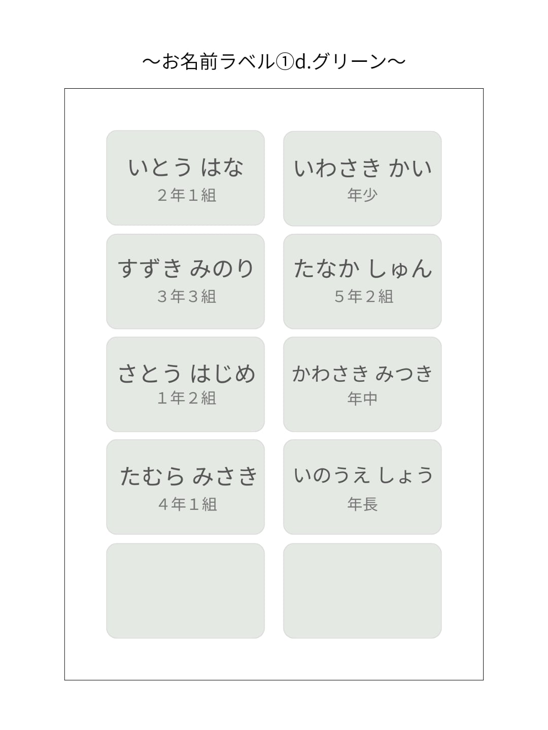 お名前ラベルテンプレート①d.グリーン|Canva無料で誰でも簡単に編集◎|スマホだけでもOK