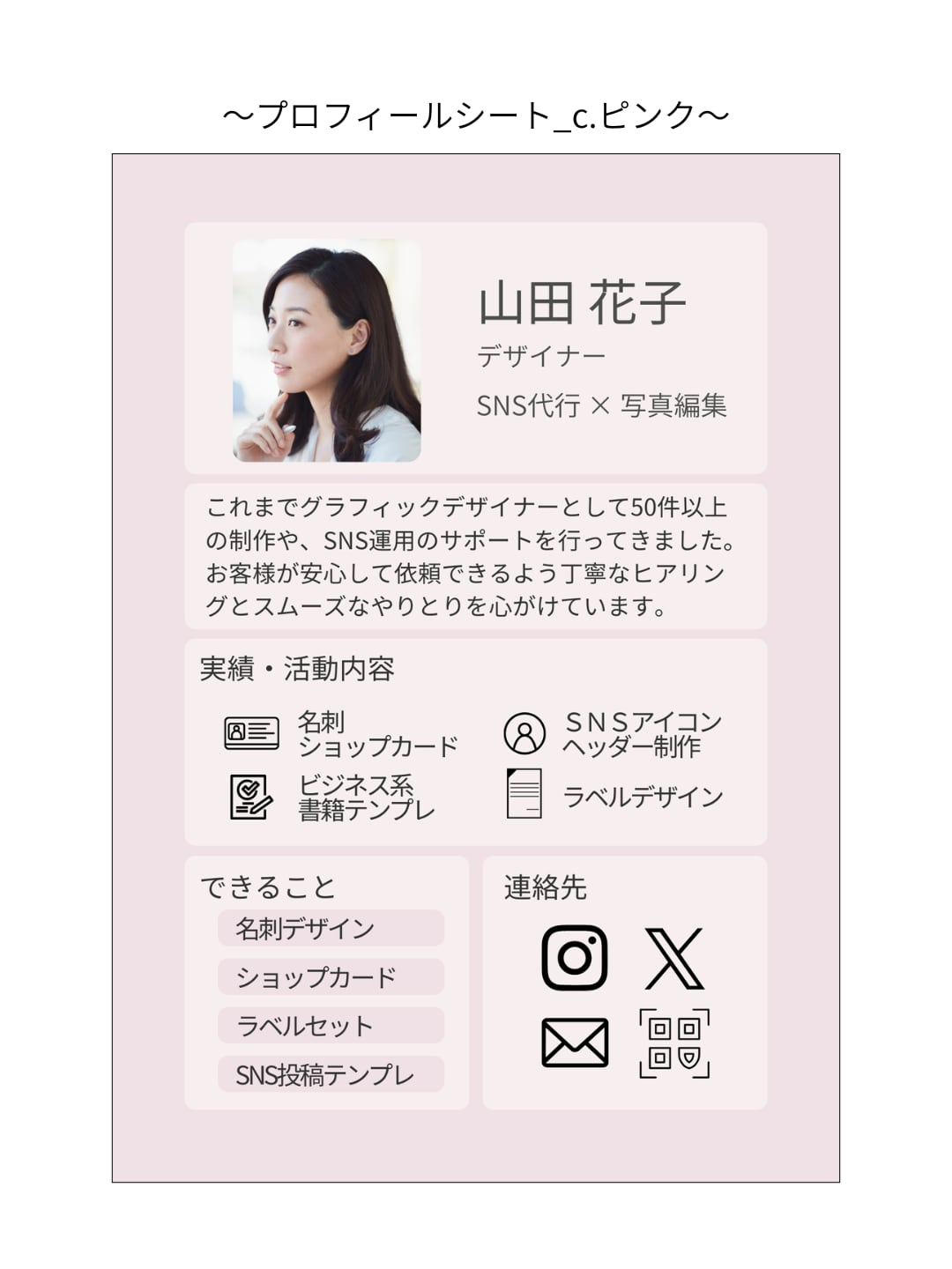 プロフィールシート_c.ピンク|Canva無料で誰でも簡単に編集◎|スマホだけでもOK