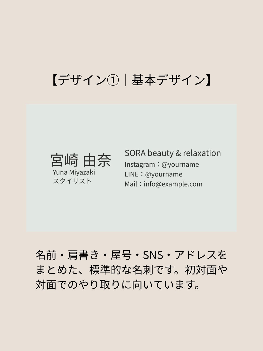 名前・肩書き・屋号(サロン名)・SNS・メールなど、