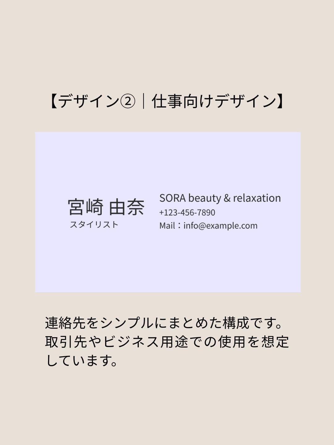 【個人事業主向け】仕事用に使いやすい|連絡先重視の名刺テンプレート(Canva)_f.ライトパープル