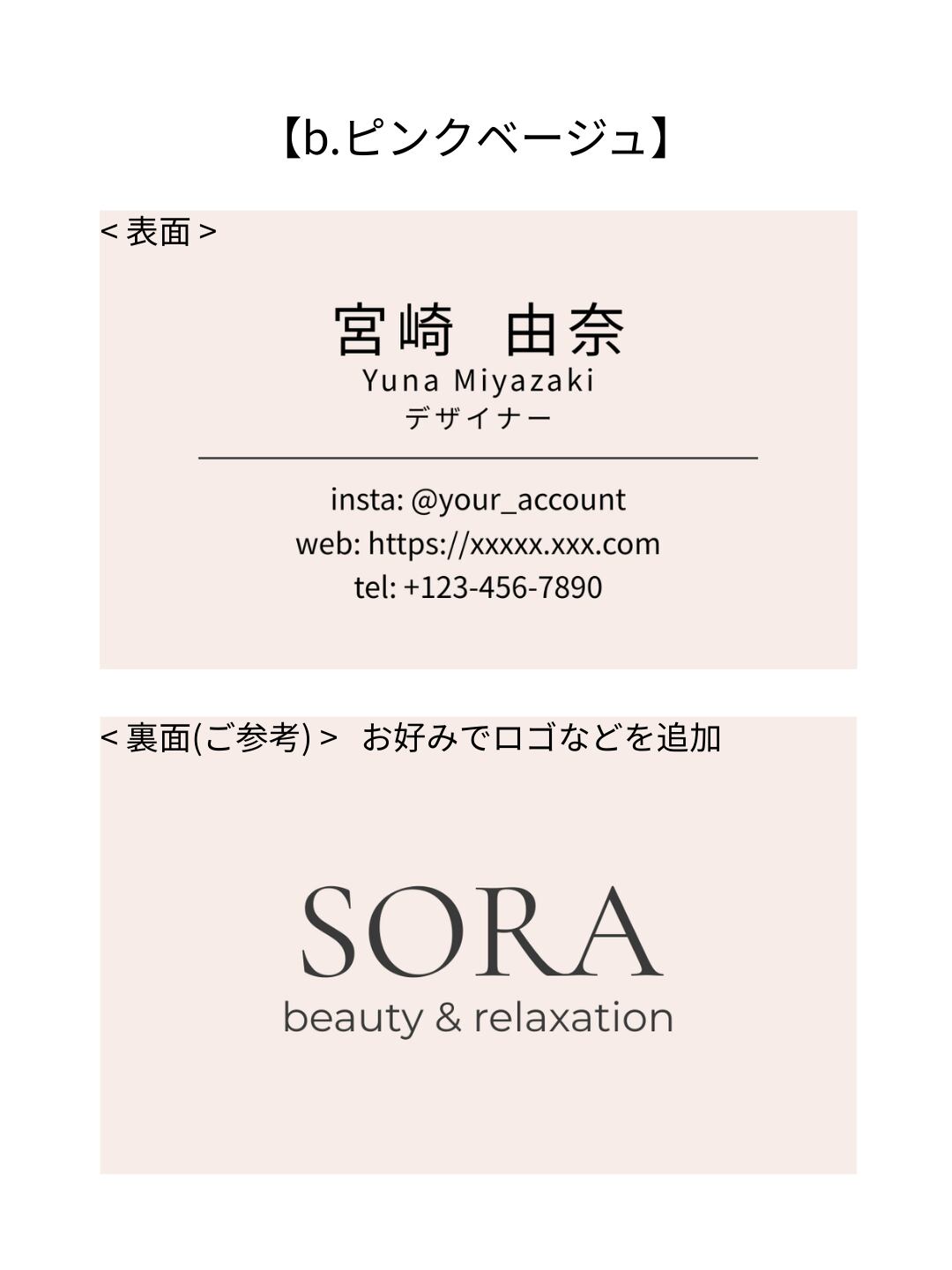 淡色ミニマル名刺テンプレ|中央寄せ|サロン・フリーランス・カフェ・ハンドメイド作家・雑貨屋さんなど、 おしゃれな業種の方|Canva_b.ピンクベージュ