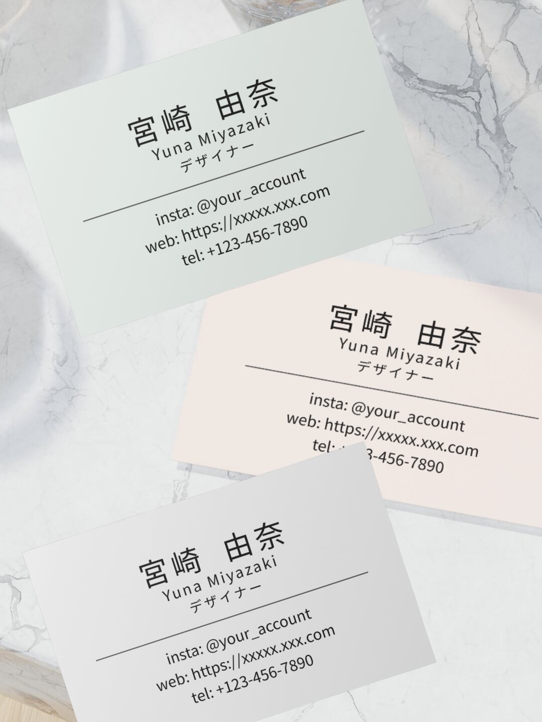淡色ミニマル名刺テンプレ|中央寄せ|サロン・フリーランス・カフェ・ハンドメイド作家・雑貨屋さんなど、 おしゃれな業種の方|Canva_e.ライトグレー