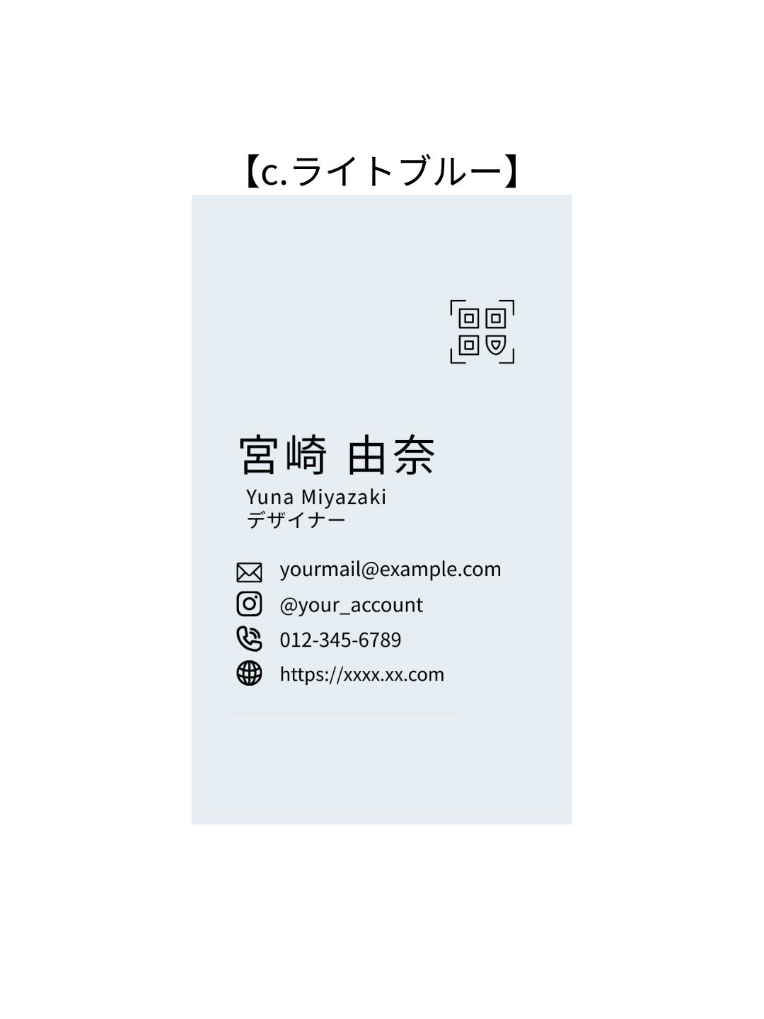 縦型ミニマル名刺|淡色×アイコンで連絡先が一目で伝わる|フリーランス向け|Canva|c.ライトブルー