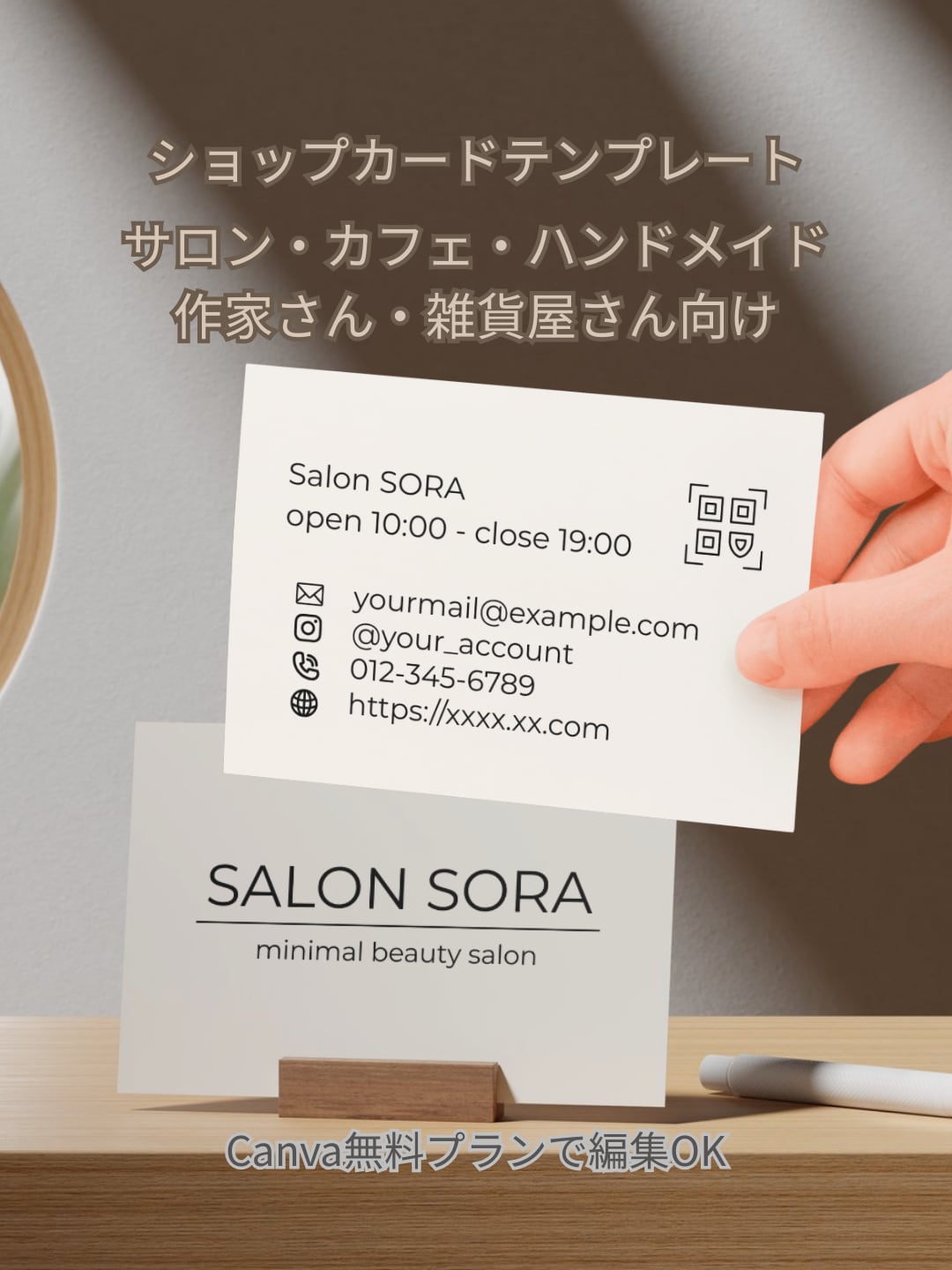 ショップカードテンプレ|美容サロン・カフェ・ショップオーナーさん、ハンドメイド作家・雑貨屋さん向け|Canva_a.ライトベージュ