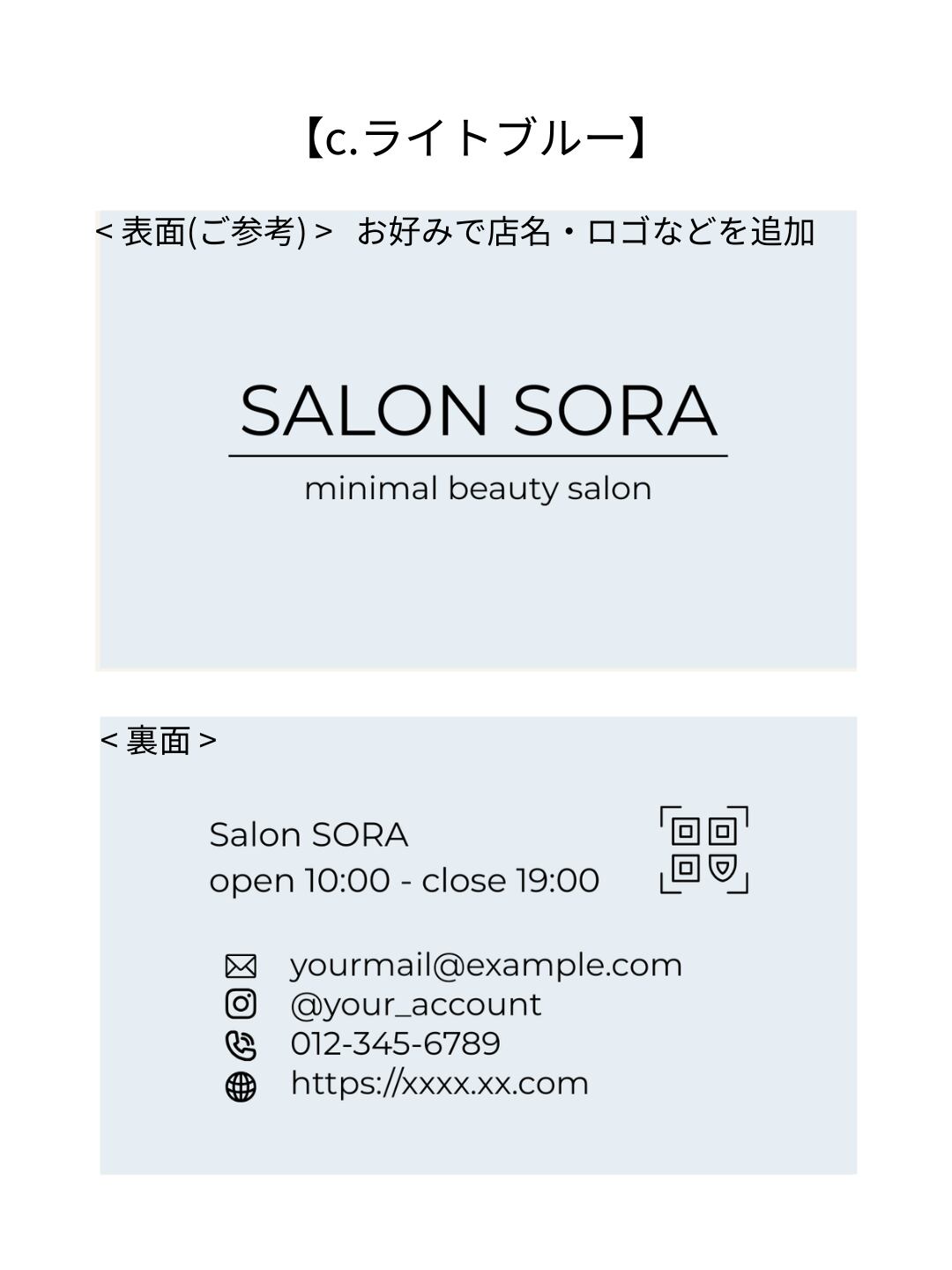 ショップカードテンプレ|美容サロン・カフェ・ショップオーナーさん、ハンドメイド作家・雑貨屋さん向け|Canva_c.ライトブルー