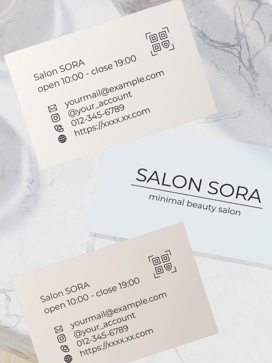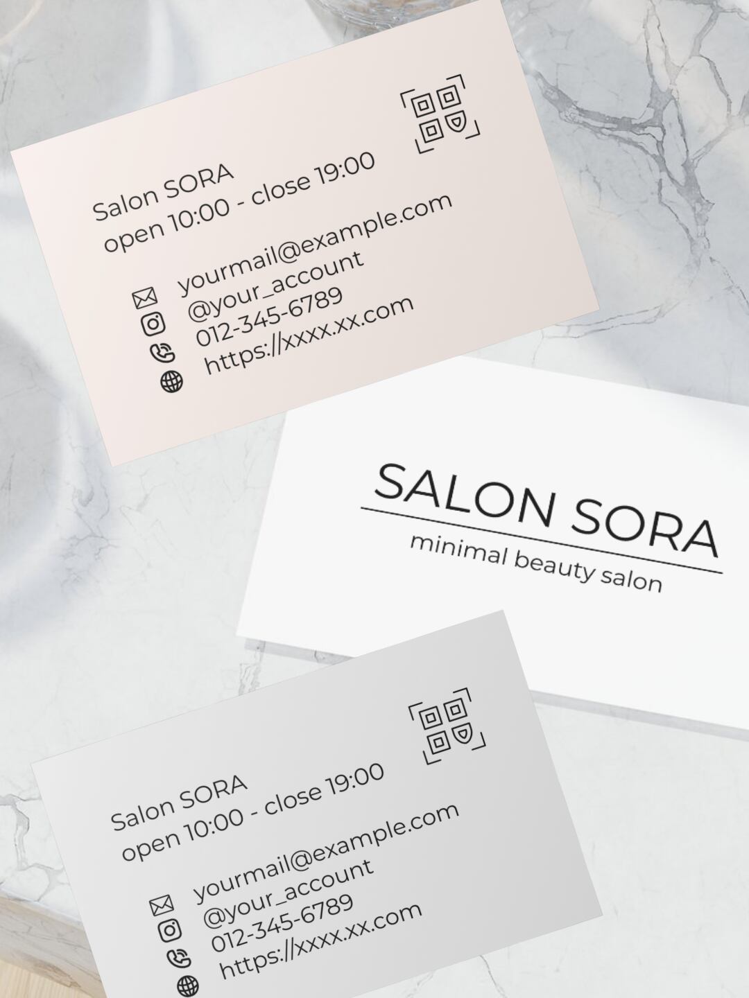 ✦淡色カラーでまとめた、連絡先をアイコンで表示するミニマルデザインのショップカード✦