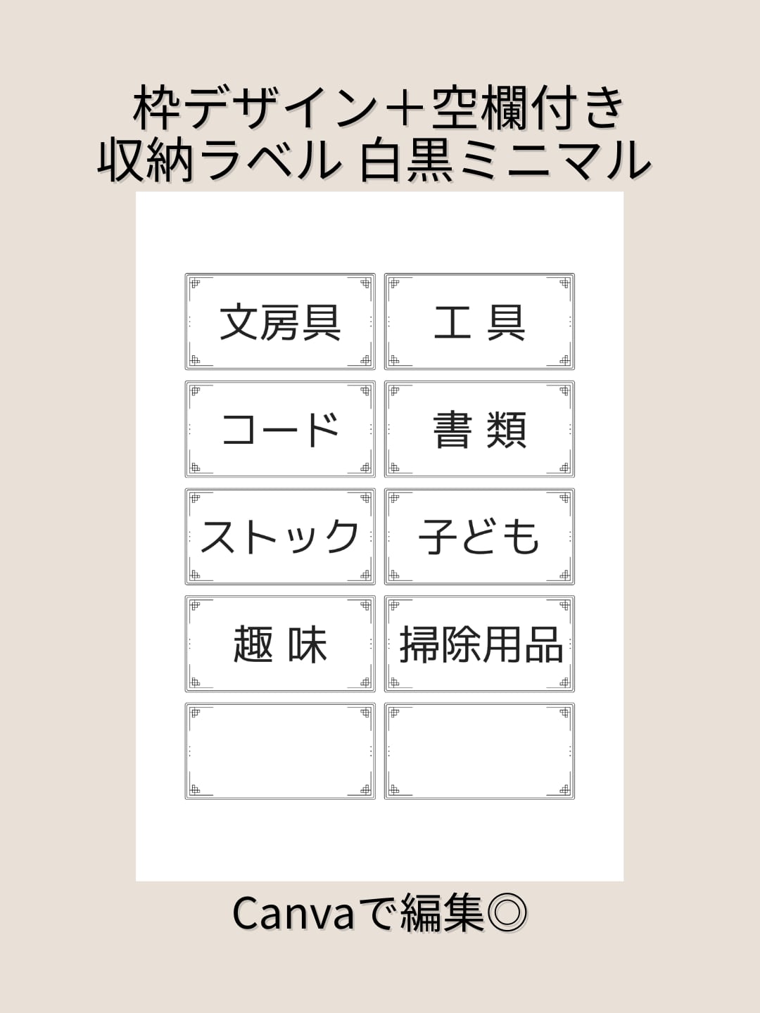 収納ラベル 白黒ミニマル|枠デザイン+空欄付き ケース用シール【Canva編集】