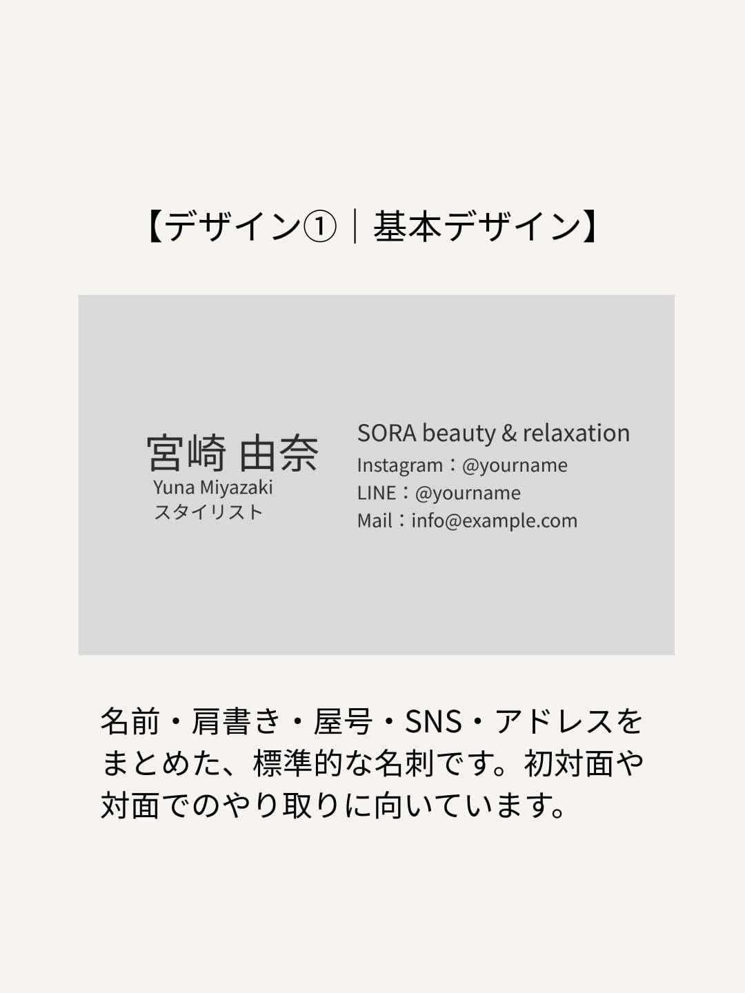 名前・肩書き・屋号(サロン名)・SNS・メールなど、