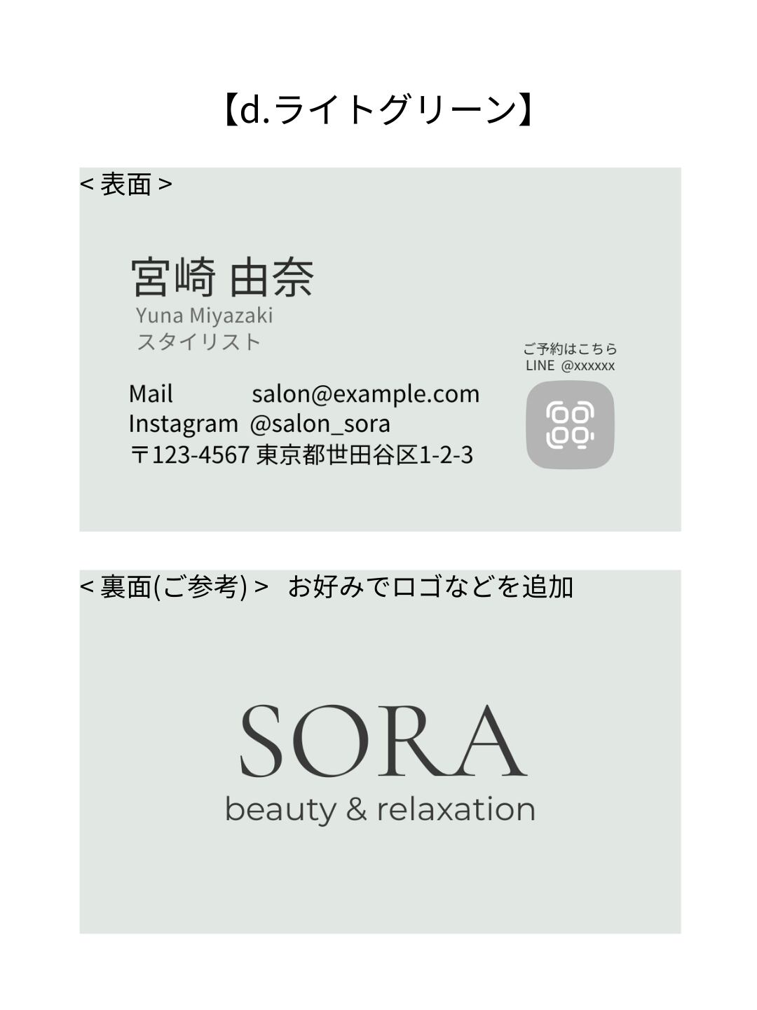 名刺テンプレート【コンテンツ販売】サロン・フリーランス・カフェ・ハンドメイド作家・雑貨屋さんなど、 おしゃれな業種の方向け_d.ライトグリーン|Canva(無料版でOK)