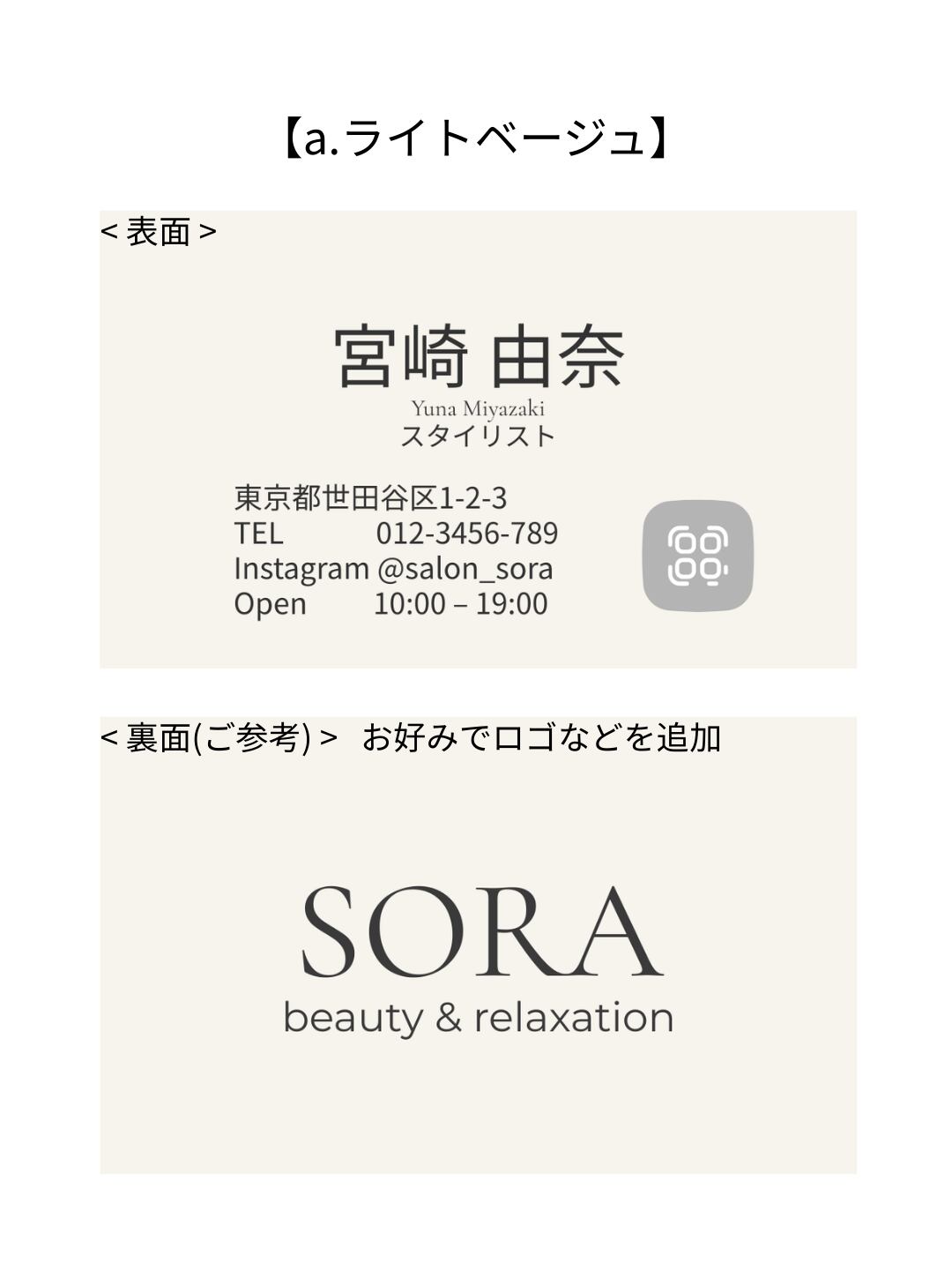 名刺テンプレート【コンテンツ販売】|実店舗サロン・カフェ ・雑貨屋さん向け_a.ライトベージュ|Canva(無料版でOK)