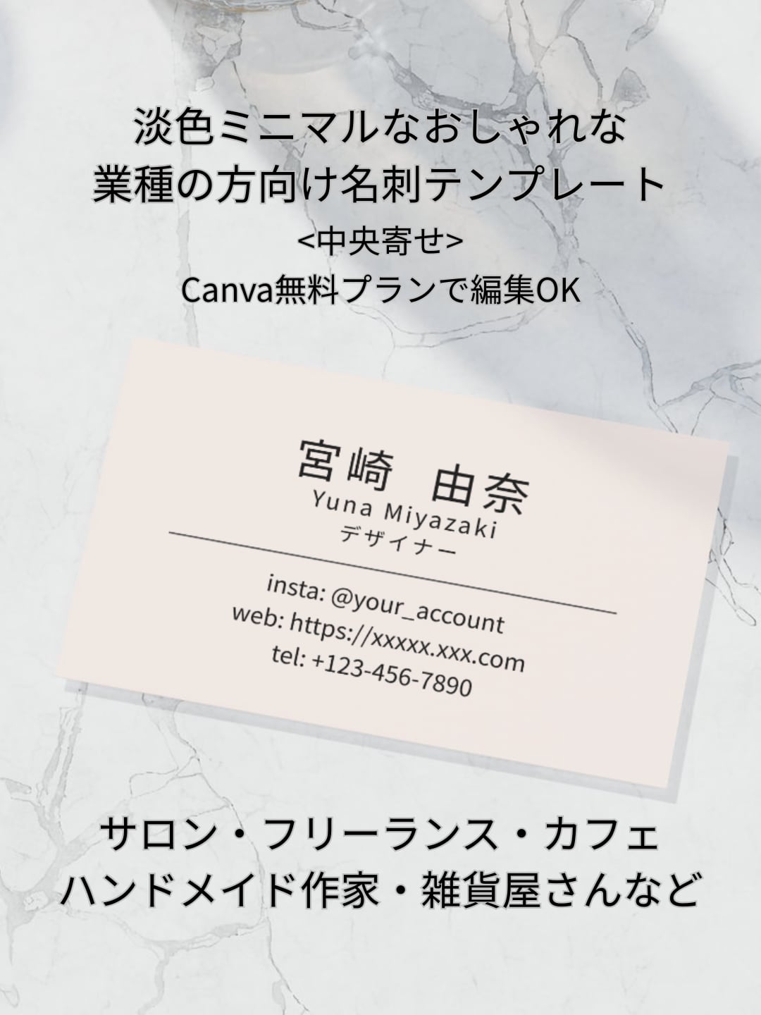 ◆シンプルで上品な淡色×ミニマル×中央寄せの名刺テンプレート◆