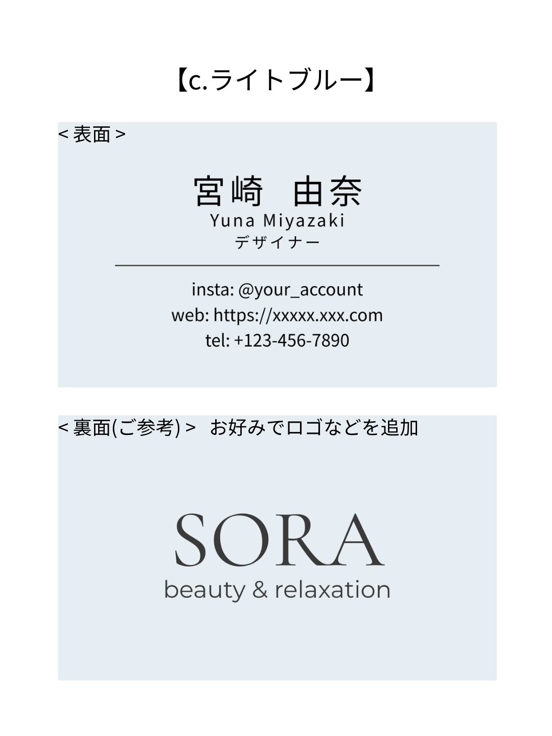 名刺テンプレート【コンテンツ販売】|淡色ミニマル中央寄せ|サロン・フリーランス・カフェ・ハンドメイド作家・雑貨屋さんなど、 おしゃれな業種の方_c.ライトブルー|Canva(無料版でOK)