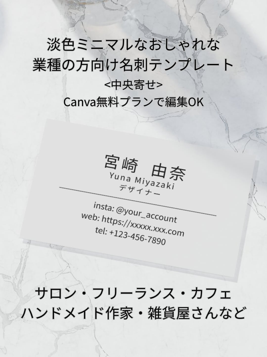 ◆シンプルで上品な淡色×ミニマル×中央寄せの名刺テンプレート◆