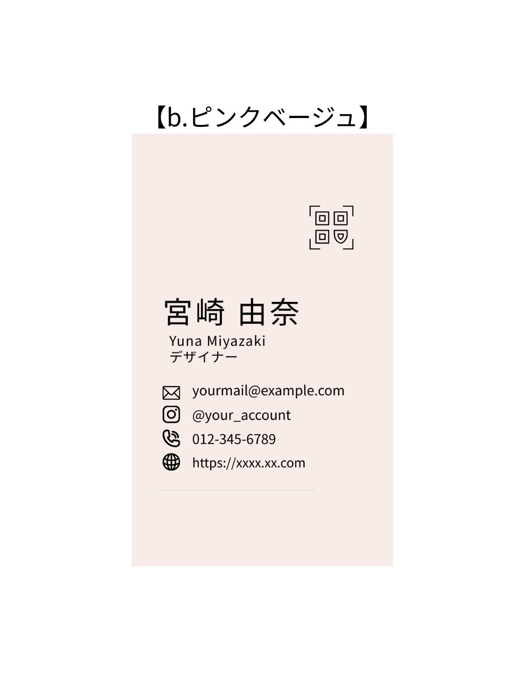 名刺テンプレート【コンテンツ販売】縦型ミニマル|フリーランス向け|淡色×アイコンで連絡先が一目で伝わる_b.ピンクベージュ|Canva(無料版でOK)