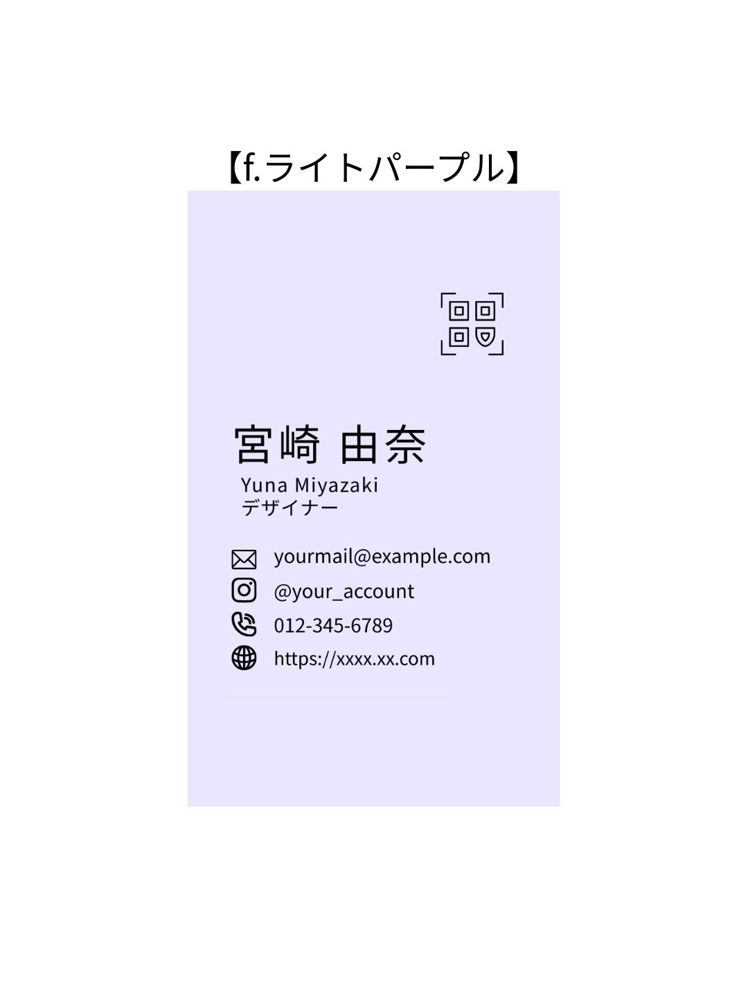 名刺テンプレート【コンテンツ販売】縦型ミニマル|フリーランス向け|淡色×アイコンで連絡先が一目で伝わる_f.ライトパープル|Canva(無料版でOK)