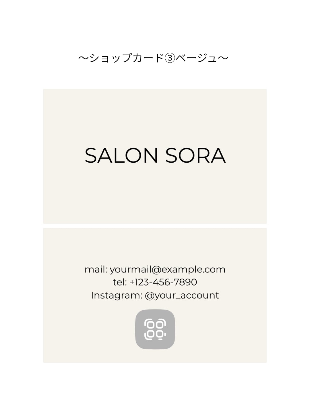 ショップカードテンプレート【コンテンツ販売】サロン経営・ハンドメイド作家・カフェ・雑貨ショップ運営などに_③ベージュ|Canva(無料版でOK)