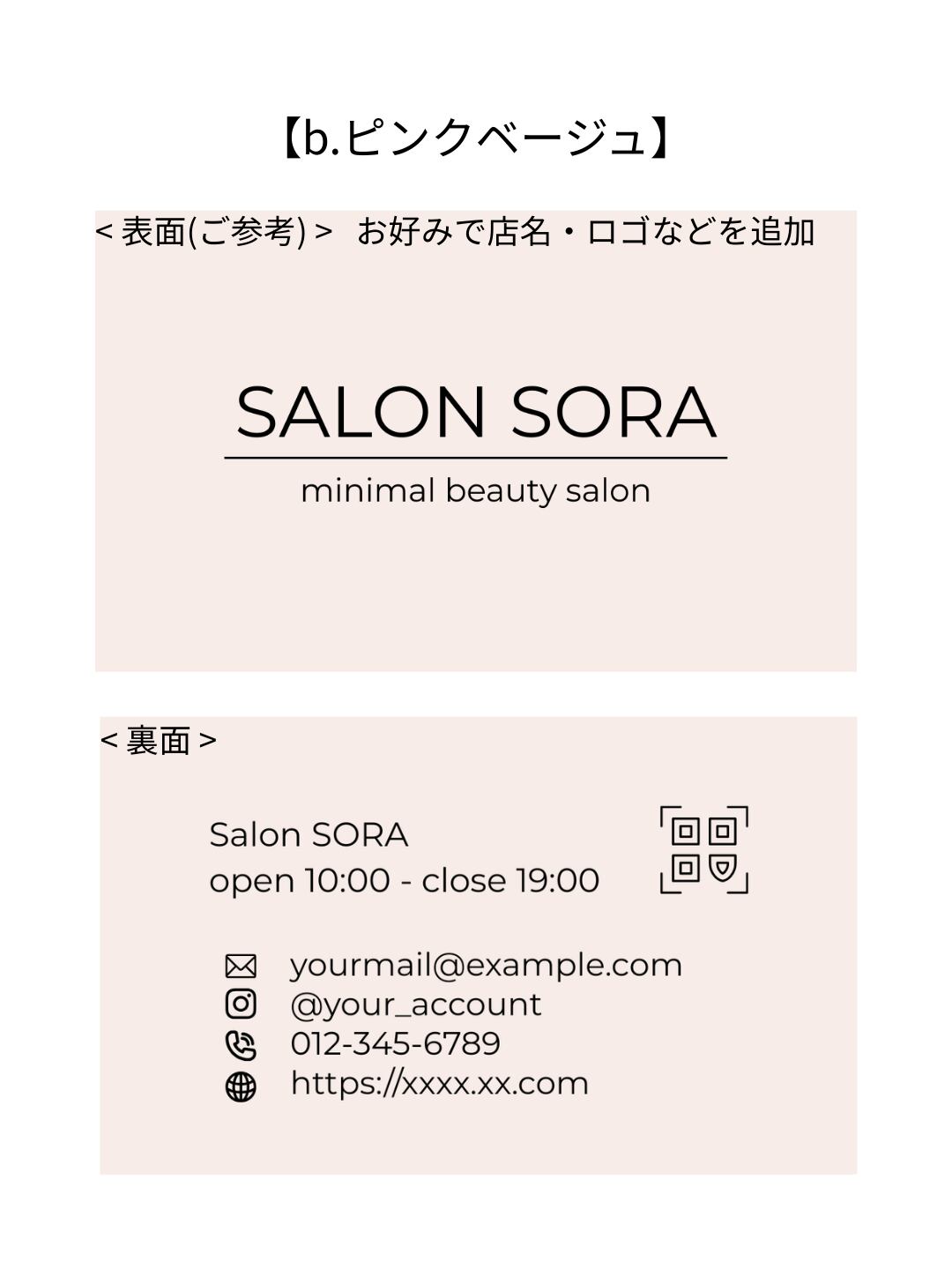 ショップカードテンプレート【コンテンツ販売】美容サロン・カフェ・ショップオーナーさん、ハンドメイド作家・雑貨屋さん向け|b.ピンクベージュ|Canva(無料版でOK)