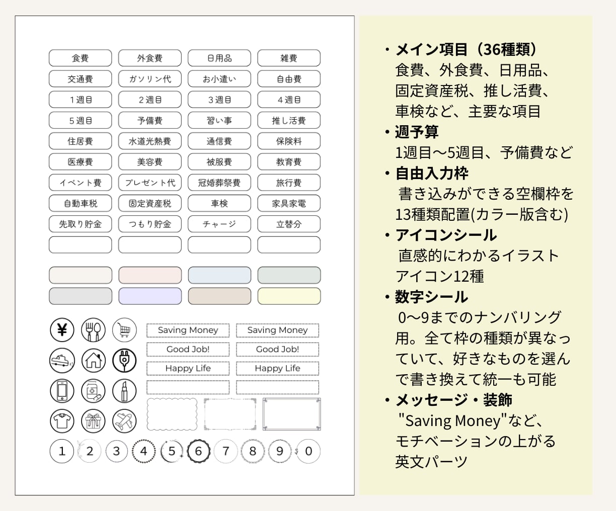【全60種以上|コンテンツ販売】家計管理ラベルシール|スライダーケース用・書き込み枠・アイコン付き|印刷してすぐ使えるデジタル素材|Canva(無料版でOK)