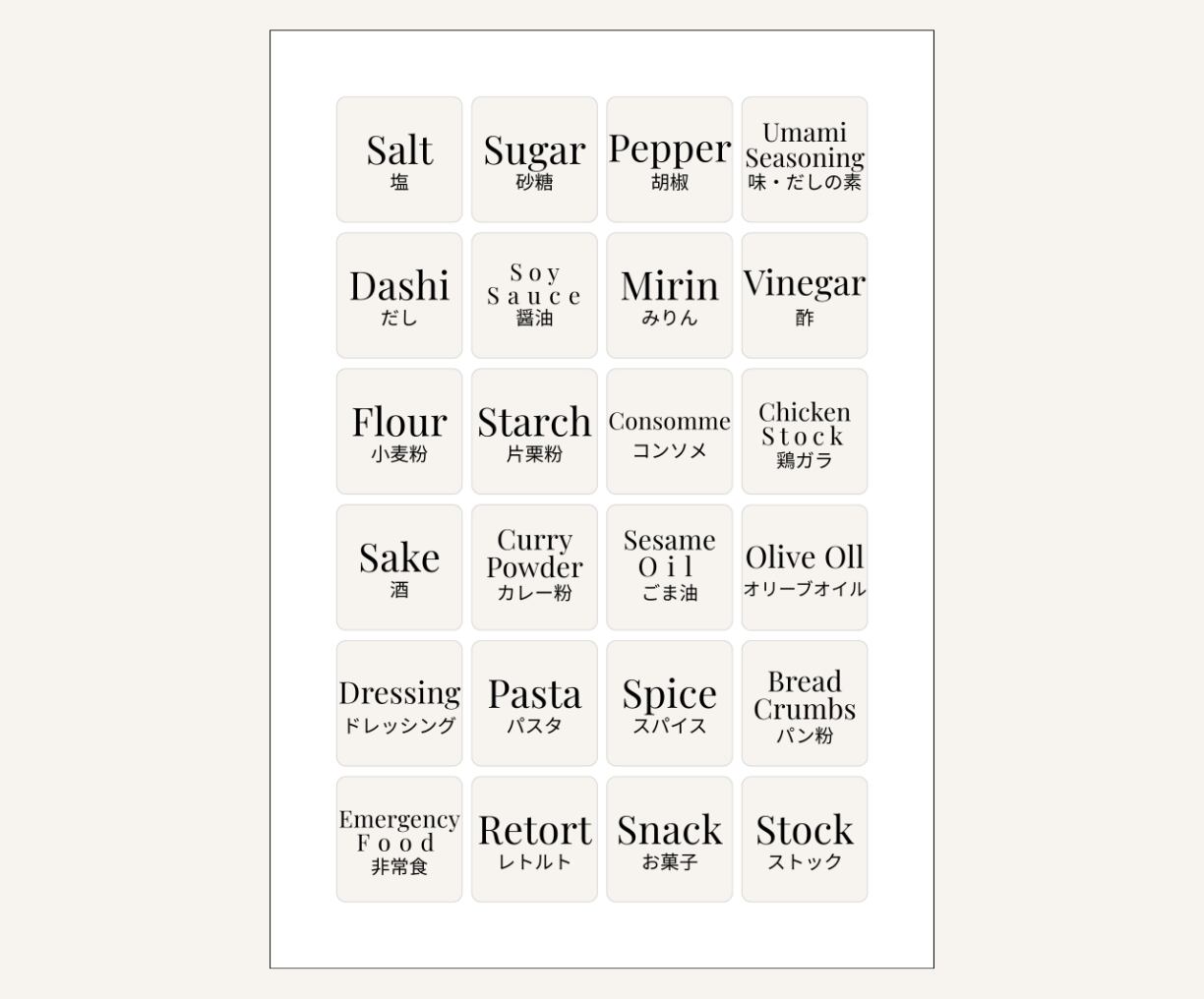 キッチン・調味料ラベルテンプレート【コンテンツ販売】英語ver.|Canva(無料版でOK)