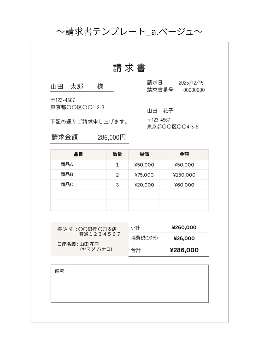 請求書テンプレート【コンテンツ販売】関数埋込み|a.ベージュ|Canvaテンプレート