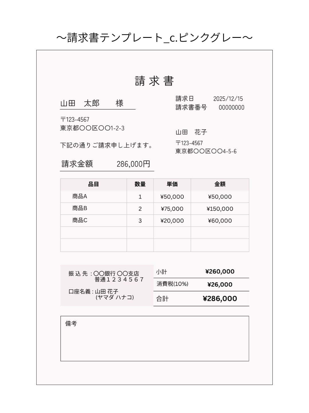 請求書テンプレート【コンテンツ販売】関数埋込み|c.ピンクグレー|Canvaテンプレート