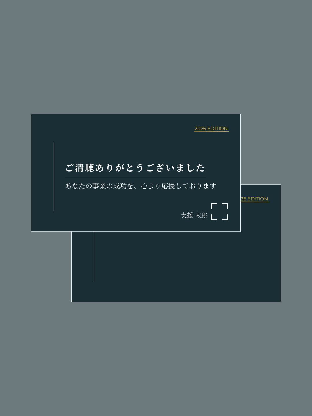 • 一貫した世界観: 告知バナーと当日スライドのデザインを統一し、ブランド力を高めます