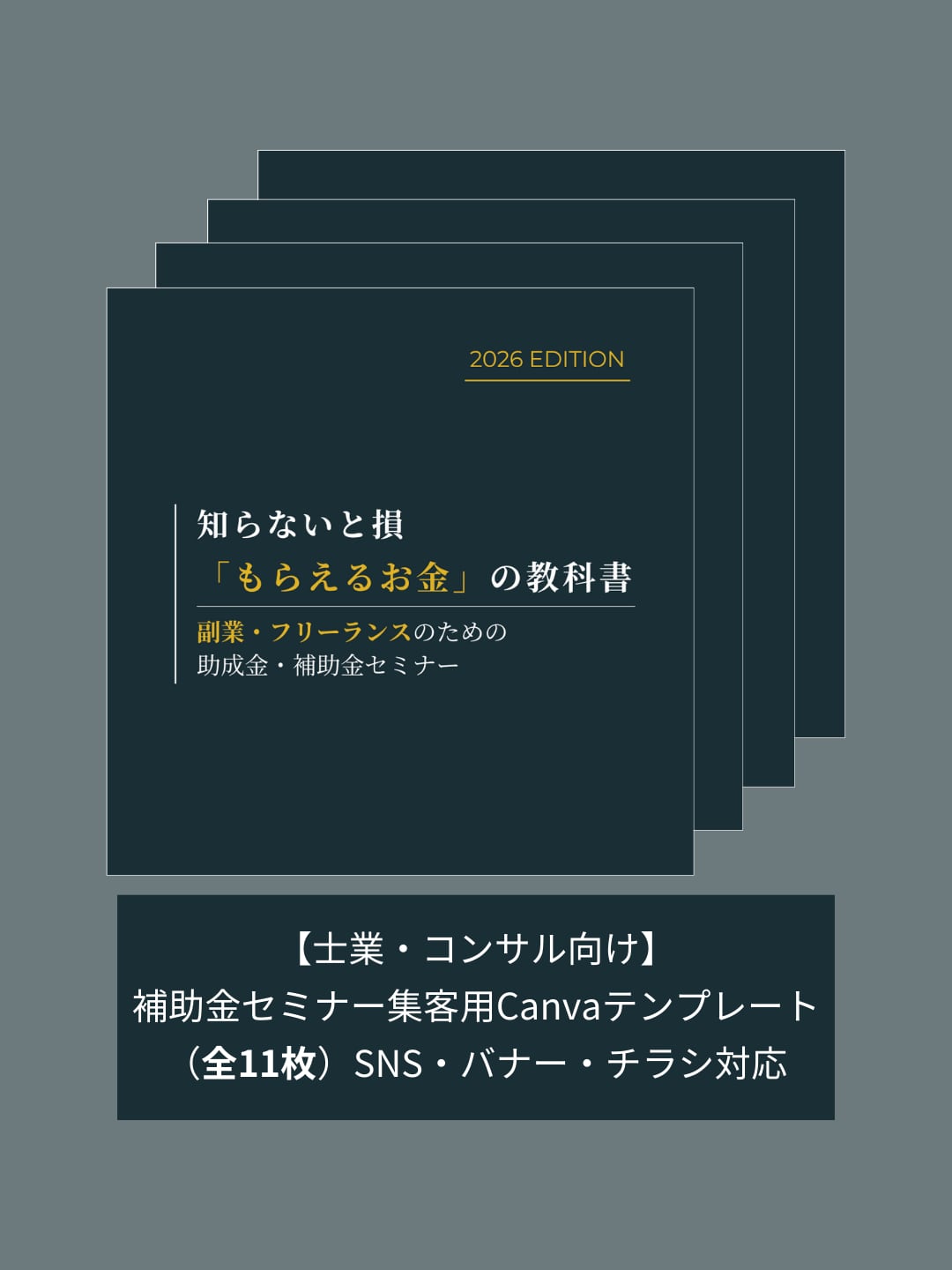 【単品|コンテンツ販売】補助金・助成金セミナー集客用テンプレ11枚|行政書士・税理士・中小企業診断士・IT導入支援事業者(ベンダー)向け|Canva