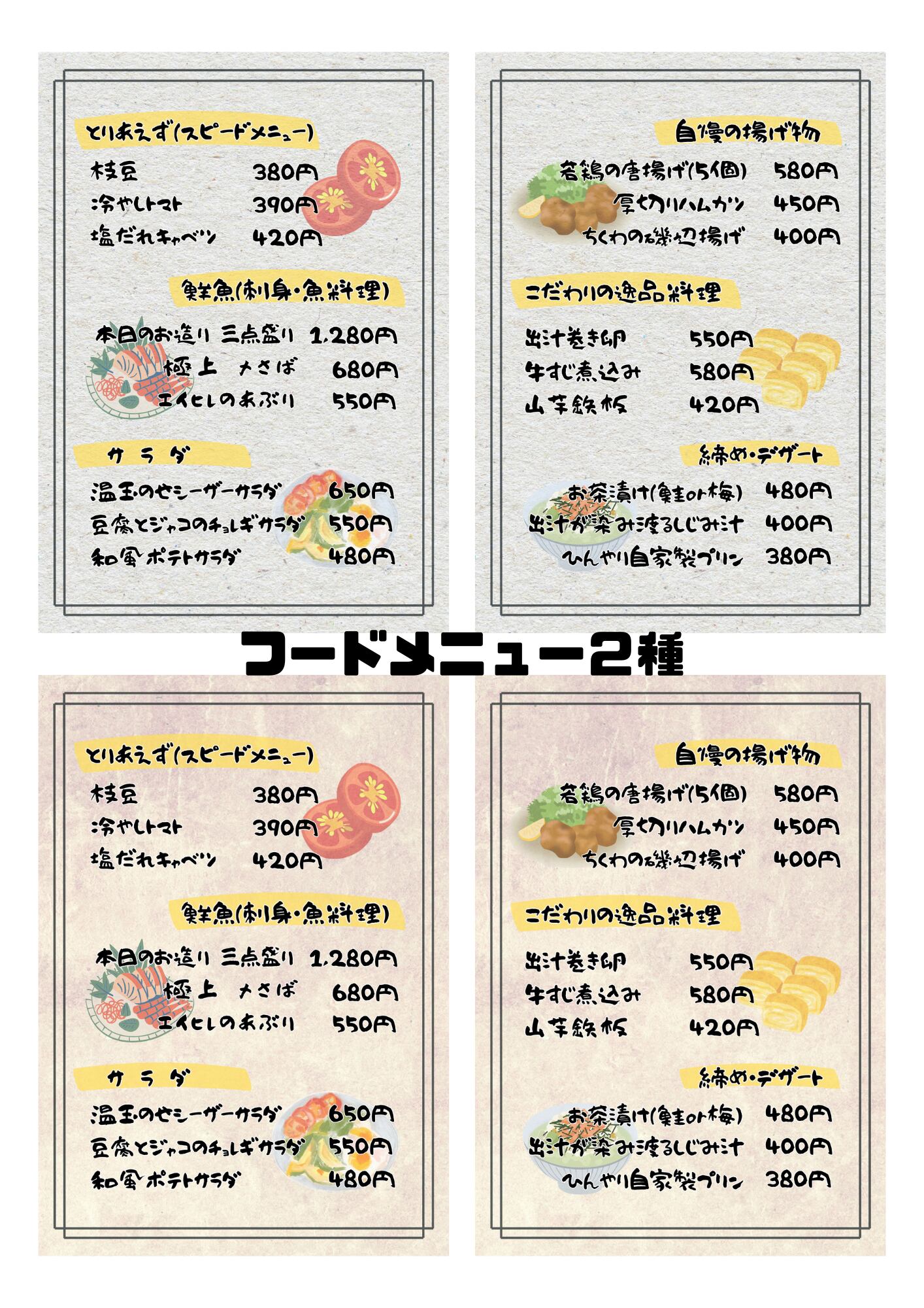 【大衆居酒屋の雰囲気そのまま。即戦力のメニューデザイン3点一式】