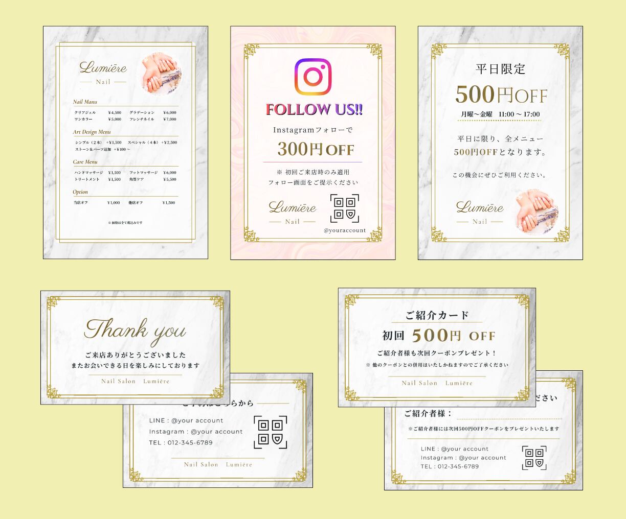 紙もの販促物デザインセット|テンプレートフルオーダー|開業準備・ブランディング・デザイン統一に|Canva